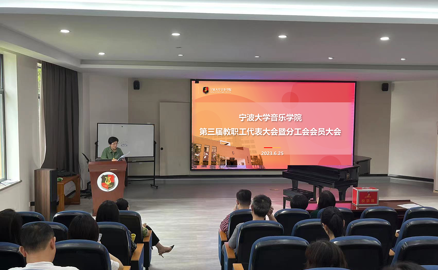第三届教职工暨工会会员代表大会在逸夫艺术楼101教室顺利召开。会议由学院上一届分工会主席钟青主持,25名正式代表参加会议。