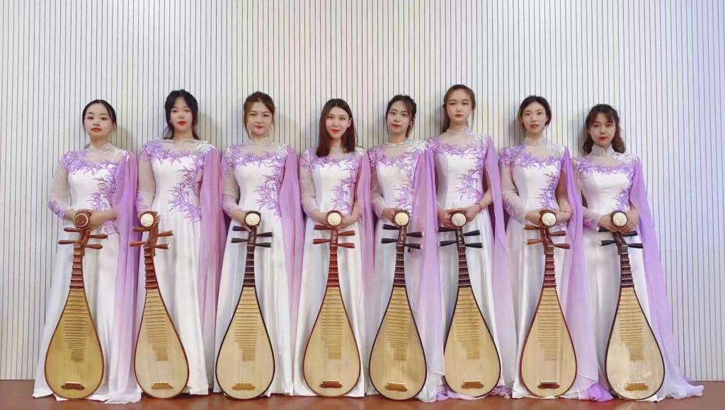的学生们在此次比赛中荣获史上最好成绩。研究生二年级学生刘仪同学荣获专业组金奖,本科生二年级的徐樱宁同学和本科生一年级的窦馨蕊同学荣获专业组银奖,研究生二年级刘书君同学、本科生三年级周新、陈惠宁和范冰同学、本科生二年级张涵棋同学均荣获专业组铜奖。由刘仪、周新、陈惠宁和徐樱宁同学组成的琵琶室内乐重奏组的作品《梦入江南》,代表98堂