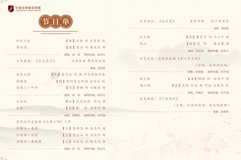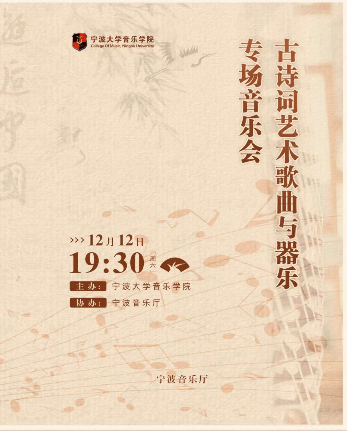 主办、宁波音乐厅协办的“古诗词艺术歌曲与器乐专场音乐会”在宁波音乐厅如期举行。98堂