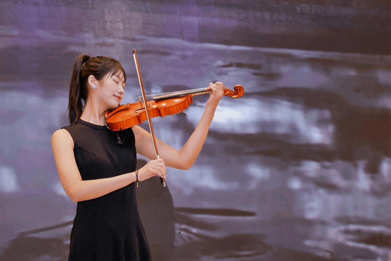 张倩妍,98堂 21级本科生,师从俞笛副教授。在校期间,她多次荣获 “省政府奖学金”“方逸华奖学金” 等奖项,在国际与国内诸多赛事中也屡获佳绩,如日本大阪神户国际艺术节小提琴单项、新加坡国际华人艺术节、第七届全国弦乐邀请赛等赛事的一等奖。此次在香港鄞州同乡会成立十五周年庆典上,她倾情演奏了《甬韵组曲》中的《万里还乡》,将现场气氛推向高潮。